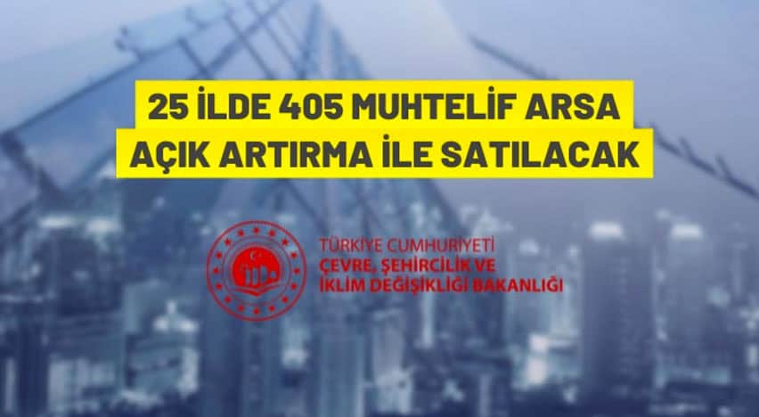 Türkiye Cumhuriyeti Çevre, Şehircilik ve İklim Değişikliği Bakanlığı, 25 ilde 405 arsayı açık artırma ile satışa sundu.