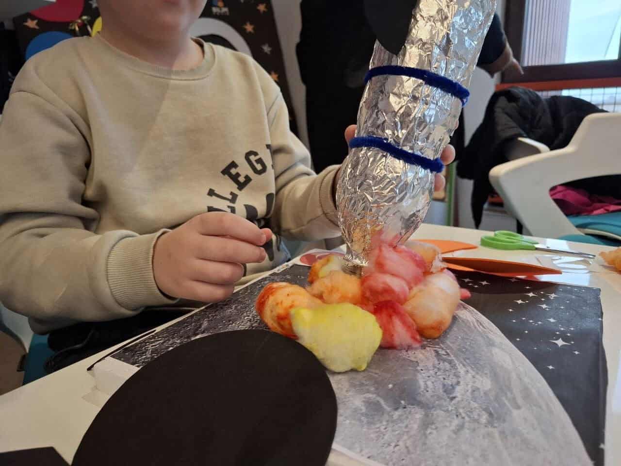 Program kapsamında pet şişeler gibi geri dönüştürülebilir materyaller kullanılarak roketler üretildi. Katılımcılar, tasarım planlamasından denge unsurlarının oluşturulmasına ve işlevsel bir modelin ortaya çıkmasına kadar sürecin her aşamasında aktif rol aldı. Bu yaklaşım, çocukların üretim odaklı düşünme, problem çözme ve karar verme yeteneklerinin gelişmesine katkı sundu.