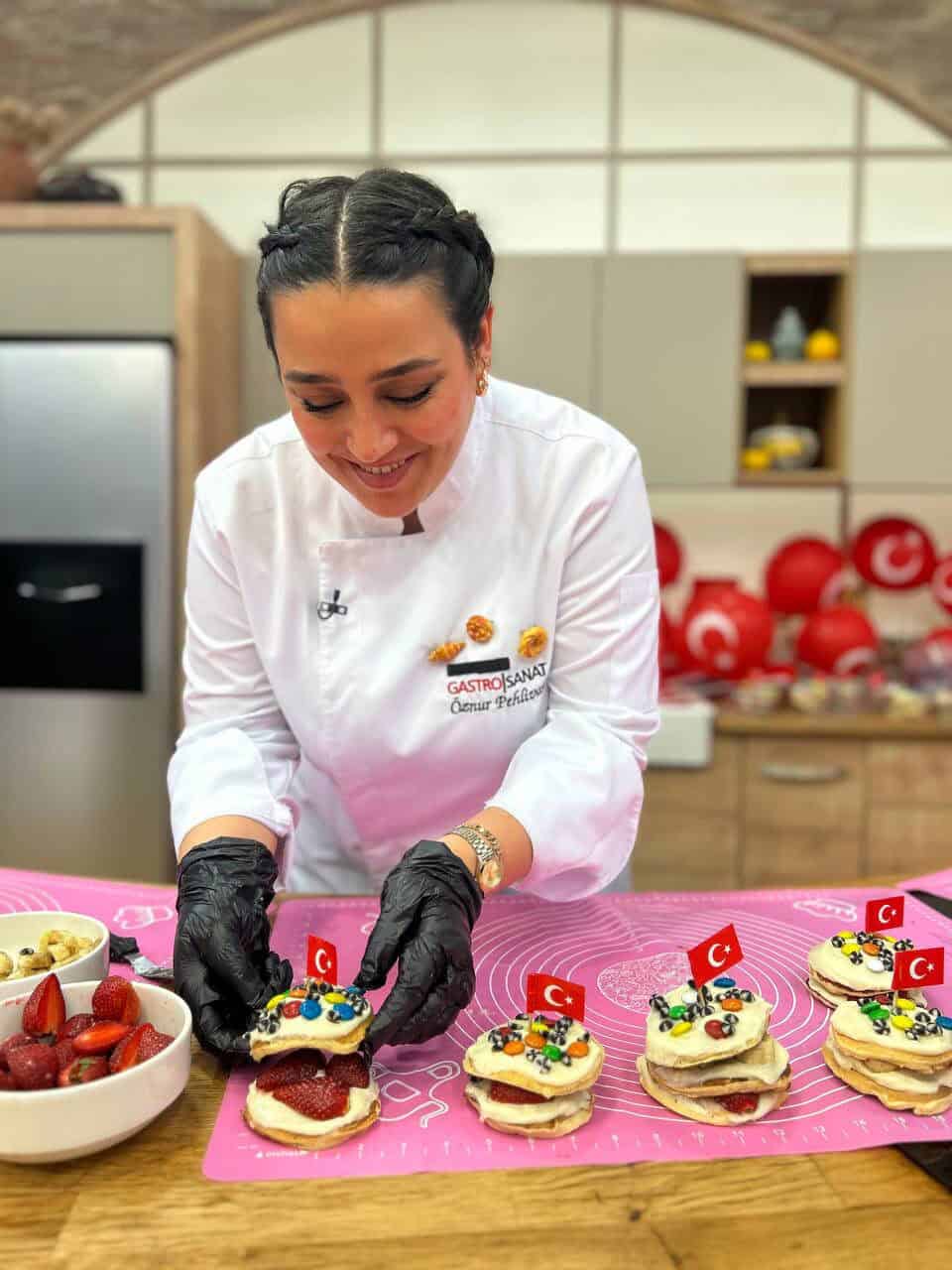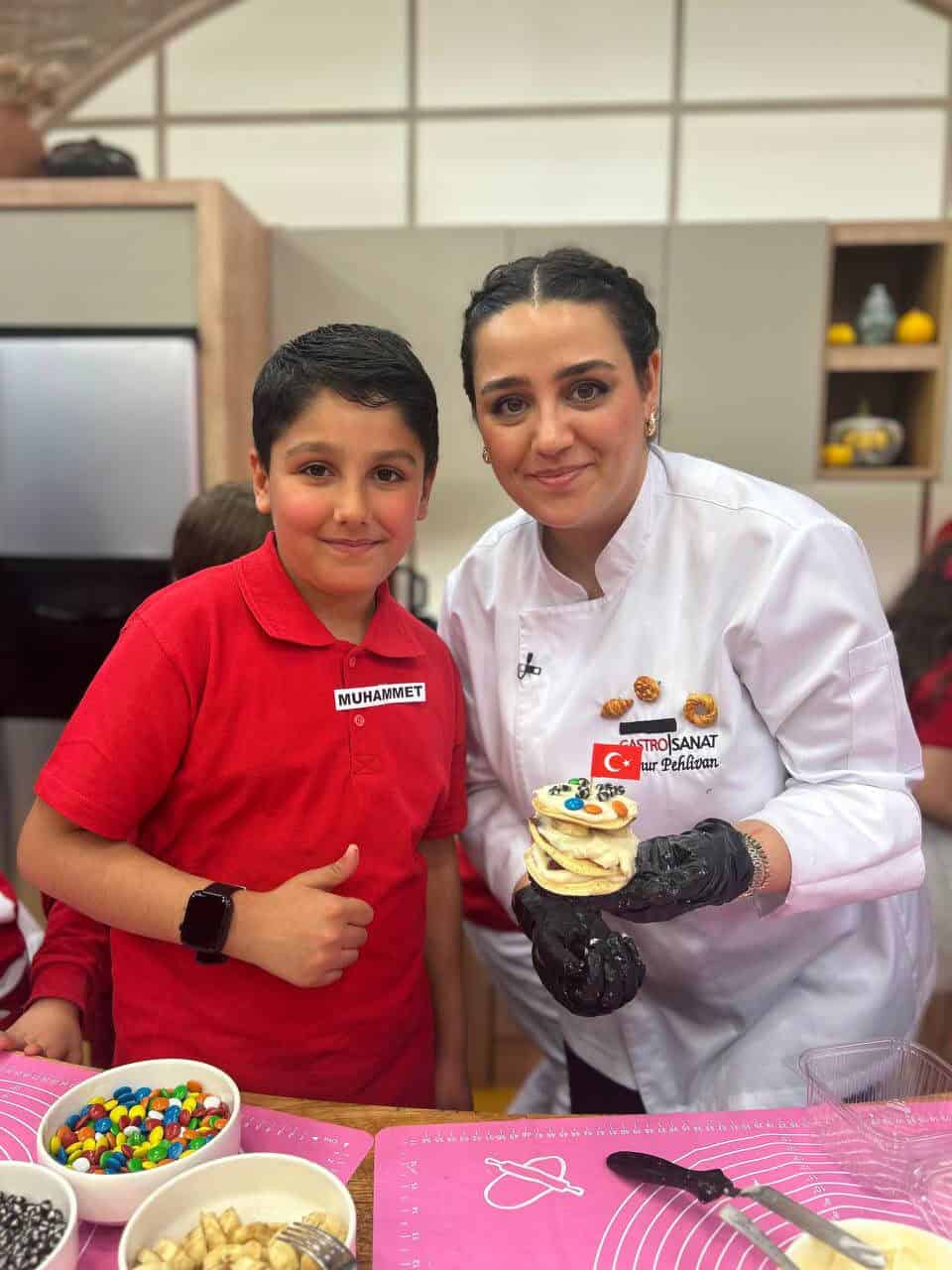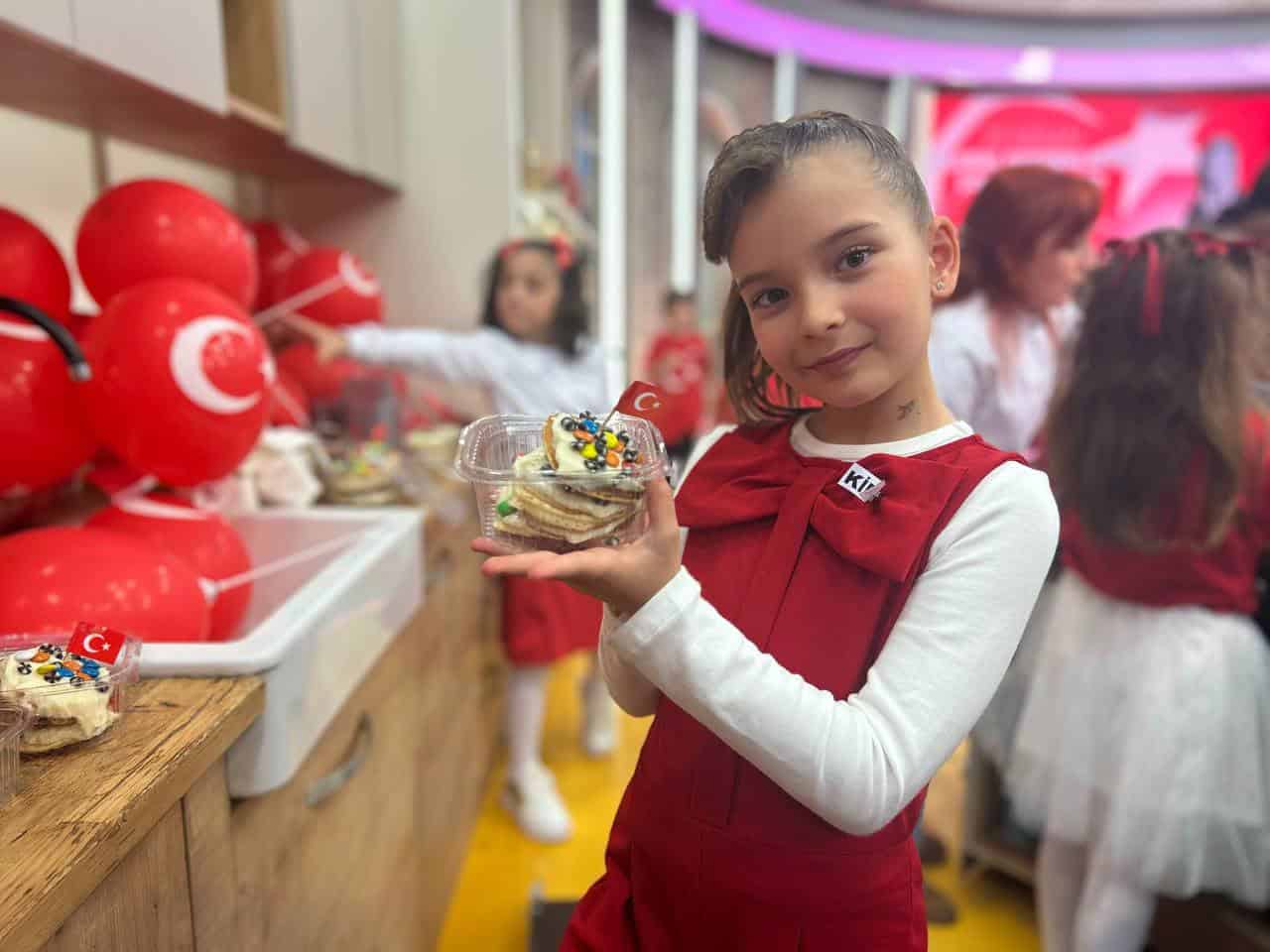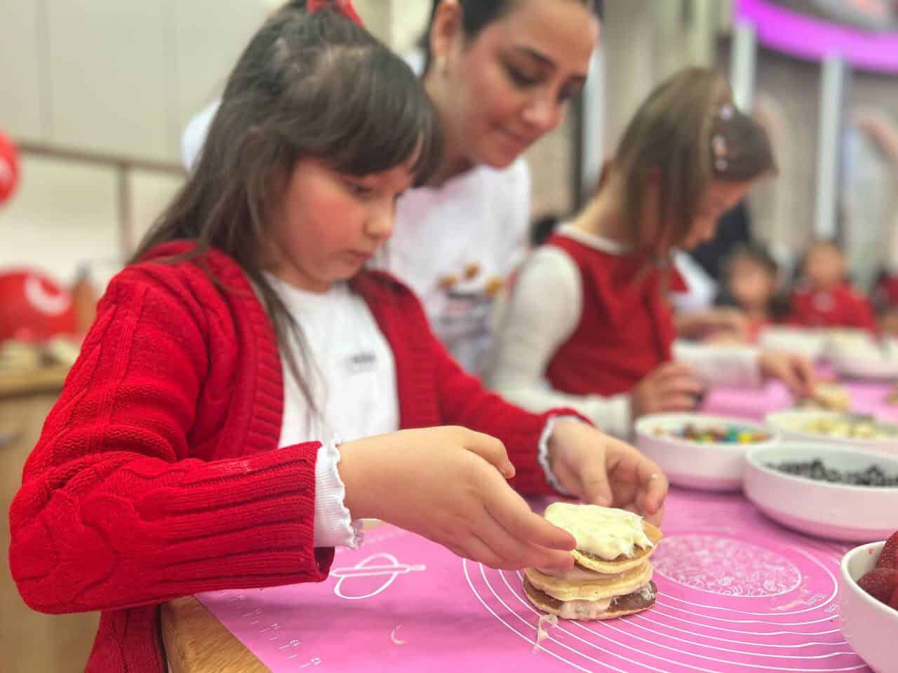 Canlı yayın sırasında pasta şefi Öznur Pehlivan eşliğinde 23 Nisan’a özel pasta hazırlanırken, öğrenciler pancak, pastacı kreması ve meyvelerle birlikte pankek pasta yaptı. Bu uygulama sayesinde çocuklar, ölçü alma, malzeme tanıma, işlem sırası oluşturma ve ekip çalışması gibi temel becerileri deneyimleme fırsatı buldu.