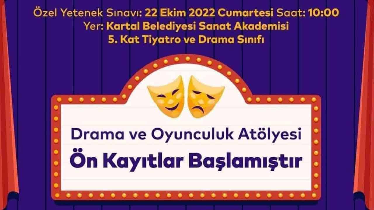 Kartal Belediye Tiyatrosu Drama ve Oyunculuk Atölyesi, 2022-2023 eğitim dönemi için ön kayıtları almaya başladı. İSTANBUL – Kartallı gençlerin hayatın her alanında...