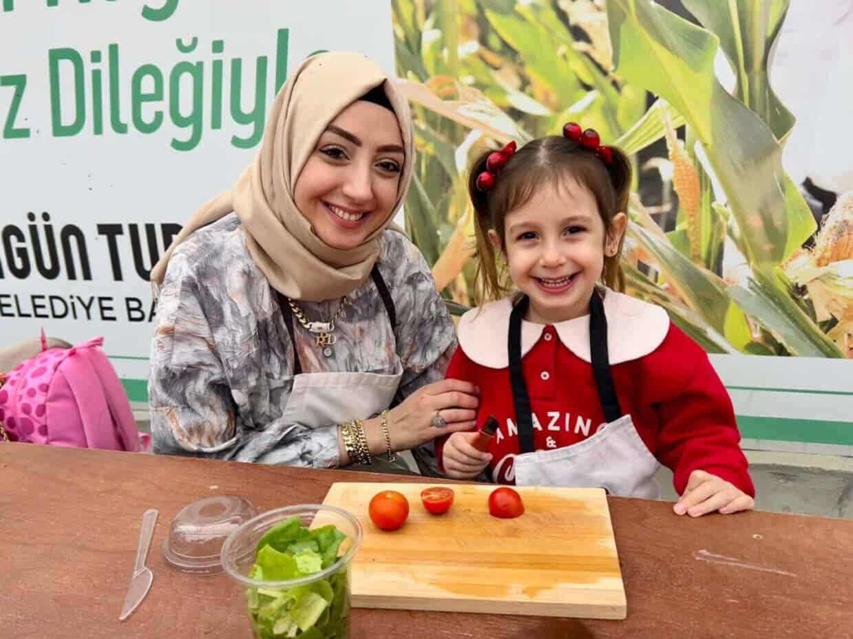 Atölye süresince anneler sebzeleri doğrama görevini üstlenirken, çocuklar da bu malzemeleri kaselere yerleştirerek mutfakta aktif rol aldı. Böylece çocuklar hem el becerilerini geliştirdi hem de mutfakta üretken olmanın keyfini yaşadı. Katılımcılar hazırladıkları salataları etkinlik sonunda birlikte tüketti.