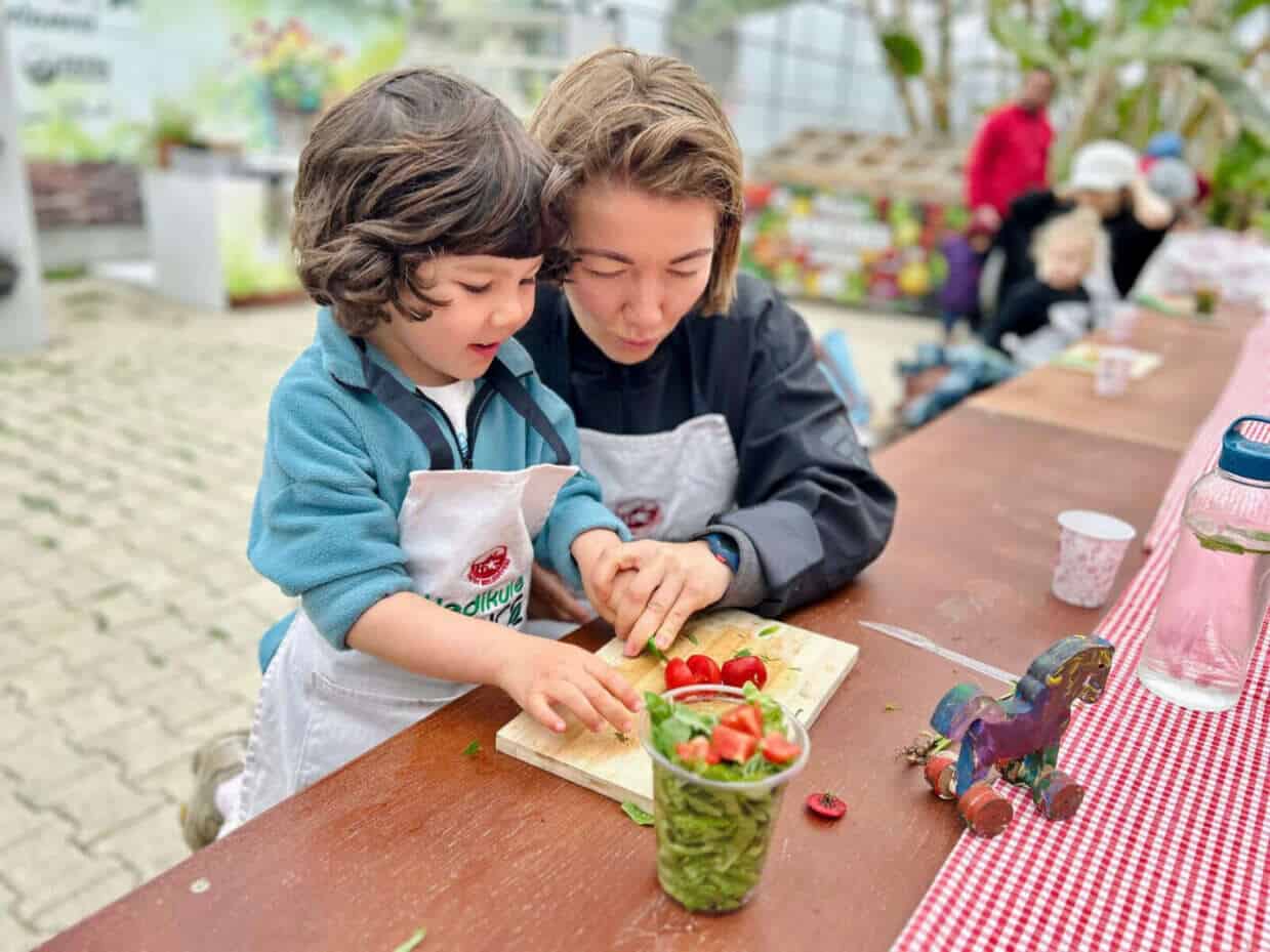 İstanbul Fatih’teki Yedikule Bahçe, ailelere doğa içinde kaliteli zaman sunmaya devam ediyor. Son olarak düzenlenen salata atölyesinde, anne ve çocuklar bahçeden topladıkları marul, çeri domates, turp ve mısır gibi taze malzemelerle sağlıklı salatalar hazırladı. Etkinlik, özellikle çocukların doğadan ürünleri tanıması ve sağlıklı beslenme bilinci geliştirmesi açısından önem taşıdı.