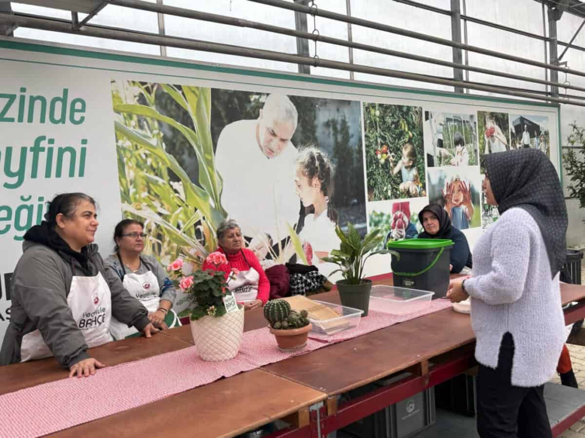 Katılımcılar, mutfak atıklarının nasıl kompost haline getirileceğini, kompostun bitki gelişimine olan etkisini ve doğal dengeye katkılarını uygulamalı olarak deneyimliyor. Özellikle Yedikule Bahçe’nin serasında yetiştirilen muz ağaçları üzerinden, kompost uygulanan ve uygulanmayan ağaçlar arasındaki gelişim farkı somut örneklerle gösteriliyor.